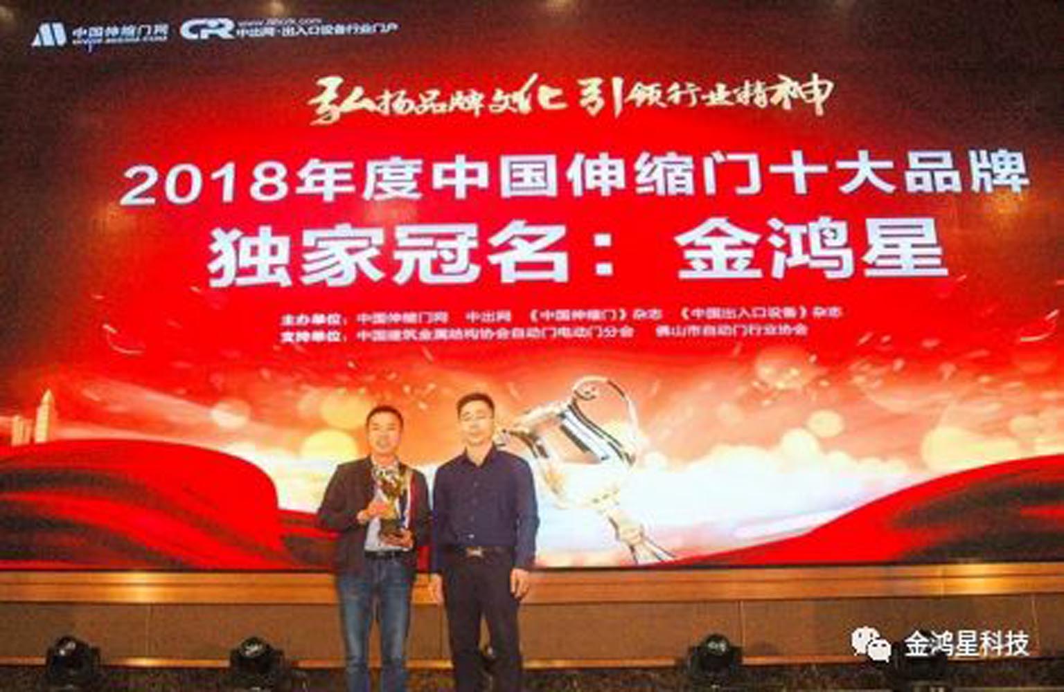 2019年3月3日,備受關(guān)注的“2018年度中國伸縮門、電動平移門、庭院別墅大門、開門機十大品牌頒獎典禮暨新零售戰(zhàn)略合作簽約儀式”在廣東省佛山羅村尖沙咀大酒店隆重舉行,佛山金鴻星智能科技有限公司(以受邀參加會議),與業(yè)界精英共聚佛山,謀劃行業(yè)盛世。
