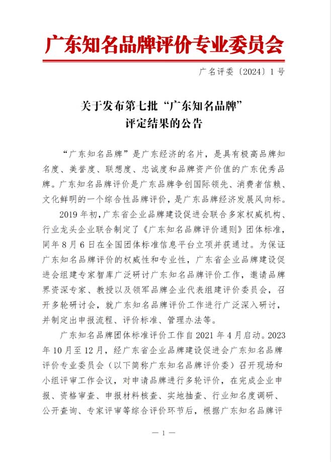 “廣東知名品牌”是廣東經(jīng)濟的名片,是具有極高品牌知名度、美譽度、聯(lián)想度、忠誠度和品牌資產(chǎn)價值的廣東優(yōu)秀品牌。廣東知名品牌評價是廣東品牌爭創(chuàng)國際領(lǐng)先、消費者信賴、文化鮮明的一個綜合性品牌評價,是廣東品牌經(jīng)濟發(fā)展風(fēng)向標。